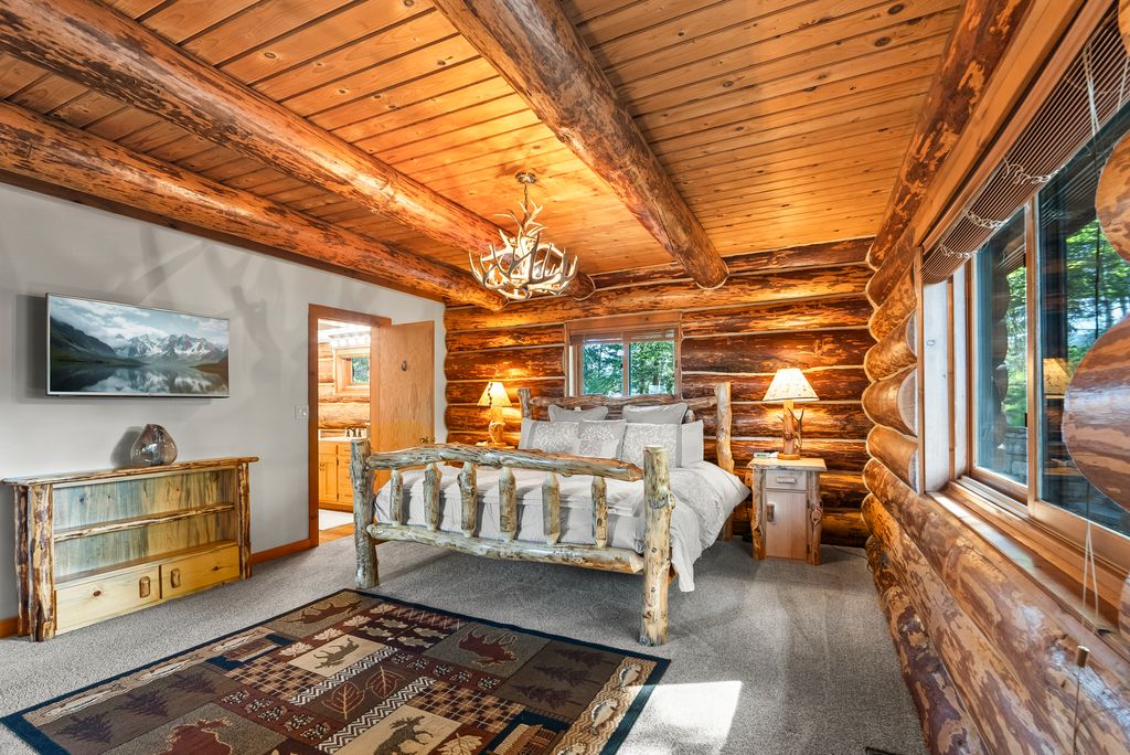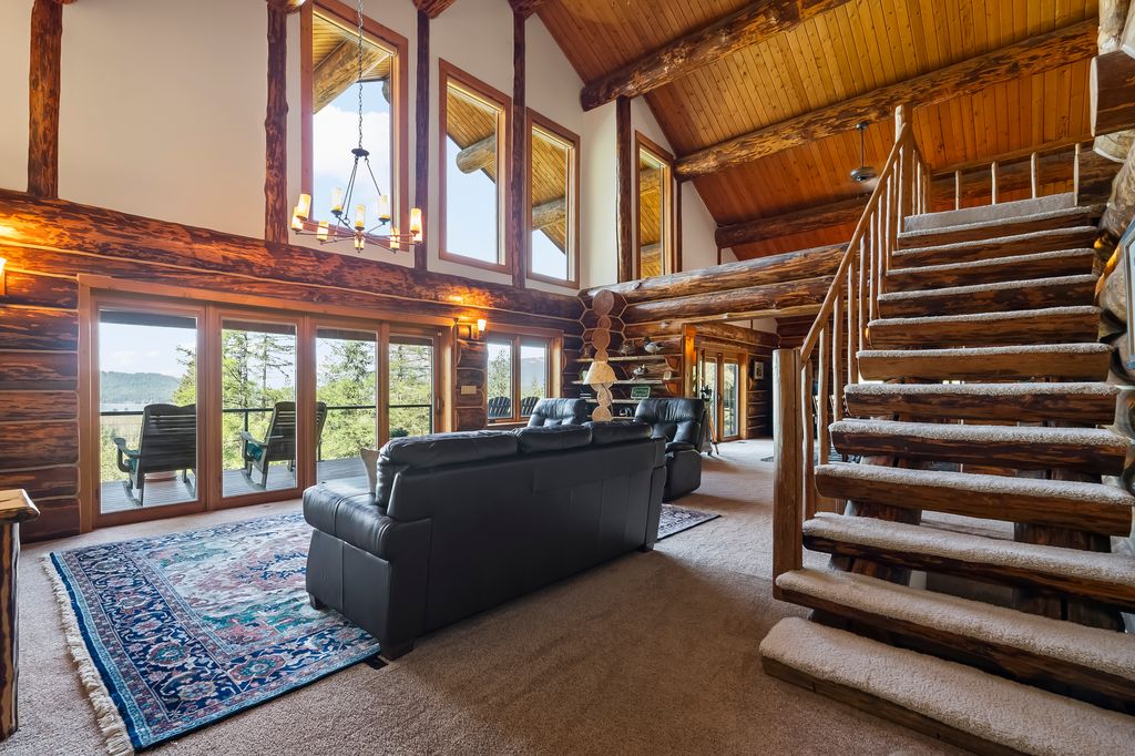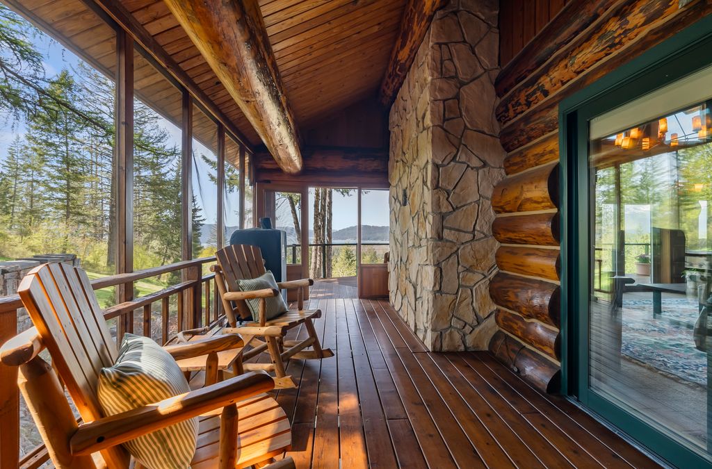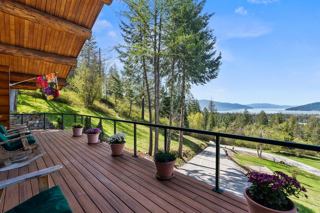 Imagine a picturesque log home nestled on five lush acres, offering an idyllic blend of rustic charm and modern convenience. Enjoy stunning panoramas of Lake Pend Oreille and Schweitzer Mountain. Designed for both comfort and luxury, this meticulously maintained home features 4 Bedrooms and 4 Bathrooms, ensuring ample space for family and guests. The warm, inviting interiors are adorned with hand-hewn logs and a striking river-rock surround fireplace in the Great Room that create a cozy yet elegant atmosphere. Vaulted ceilings enhance the sense of space, and the large windows allow natural light to flood the rooms, while offering breathtaking views from nearly every room. The kitchen features a custom backsplash crafted by local artist, Gail Lyster, a large island for culinary endeavors, and a generously sized dining room. The main floor master bedroom suite offers privacy, while the loft hosts a family room and additional sleeping quarters. The wrap-around deck and screened-in porch are perfect for savoring the tranquil surroundings. Outside, the expansive property provides endless opportunities for gardening and recreation. The beautifully landscaped grounds, two-car attached garage and large shop further elevate this home's appeal. Notable upgrades include interior chinking completed in 2019 and a new metal roof with ice shield added in 2020. Within great proximity to town, lake access, golf, skiing and numerous outdoor activities. This home is a perfect retreat for those seeking a harmonious blend of comfort and nature.