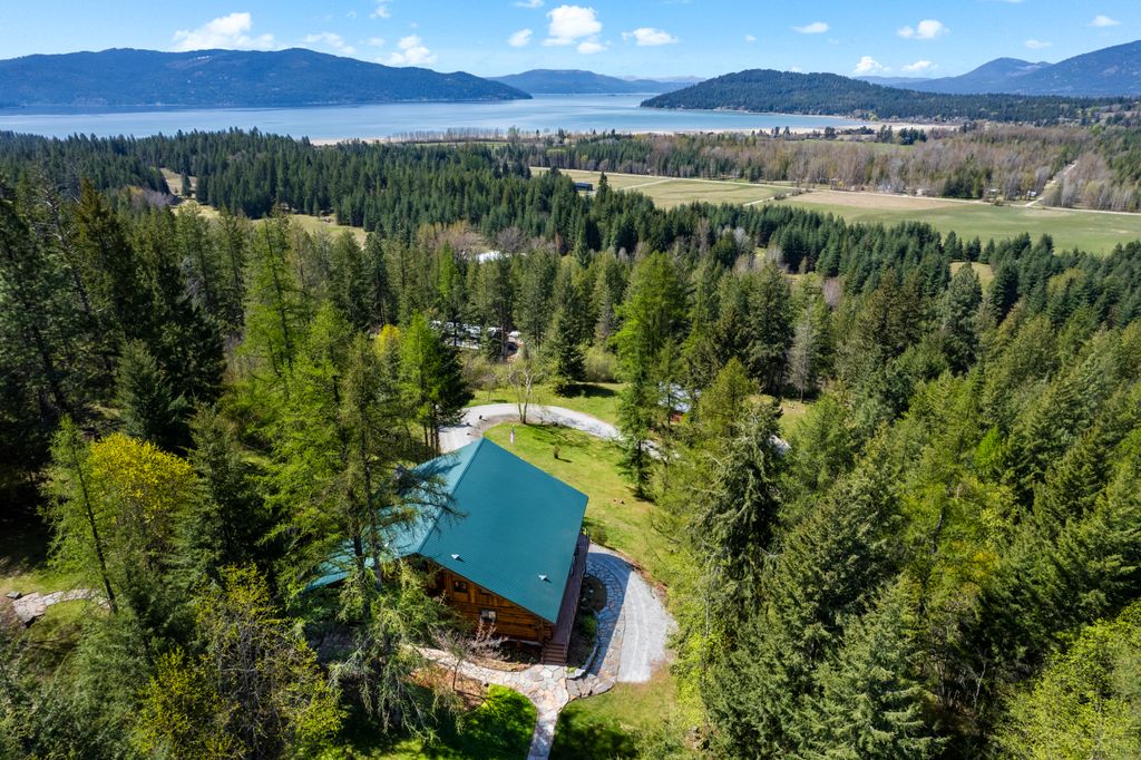 Imagine a picturesque log home nestled on five lush acres, offering an idyllic blend of rustic charm and modern convenience. Enjoy stunning panoramas of Lake Pend Oreille and Schweitzer Mountain. Designed for both comfort and luxury, this meticulously maintained home features 4 Bedrooms and 4 Bathrooms, ensuring ample space for family and guests. The warm, inviting interiors are adorned with hand-hewn logs and a striking river-rock surround fireplace in the Great Room that create a cozy yet elegant atmosphere. Vaulted ceilings enhance the sense of space, and the large windows allow natural light to flood the rooms, while offering breathtaking views from nearly every room. The kitchen features a custom backsplash crafted by local artist, Gail Lyster, a large island for culinary endeavors, and a generously sized dining room. The main floor master bedroom suite offers privacy, while the loft hosts a family room and additional sleeping quarters. The wrap-around deck and screened-in porch are perfect for savoring the tranquil surroundings. Outside, the expansive property provides endless opportunities for gardening and recreation. The beautifully landscaped grounds, two-car attached garage and large shop further elevate this home's appeal. Notable upgrades include interior chinking completed in 2019 and a new metal roof with ice shield added in 2020. Within great proximity to town, lake access, golf, skiing and numerous outdoor activities. This home is a perfect retreat for those seeking a harmonious blend of comfort and nature.